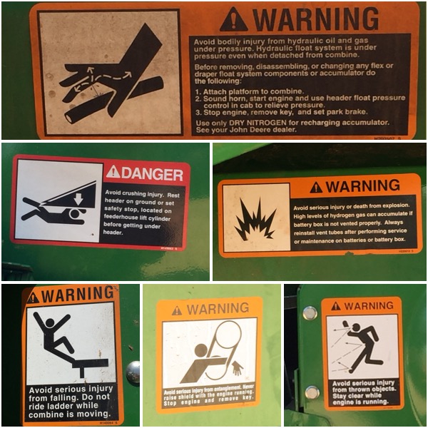 Wahnsinn, wie viele Teile so ein Mähdrescher besitzt und vor allem muss alles am rechten Fleck sein, damit er dann so funktioniert. Gegenüber so einer Maschine hat man schon allerhand Respekt und die vielen Gefahrenhinweise unterstützen dies natürlich noch.
