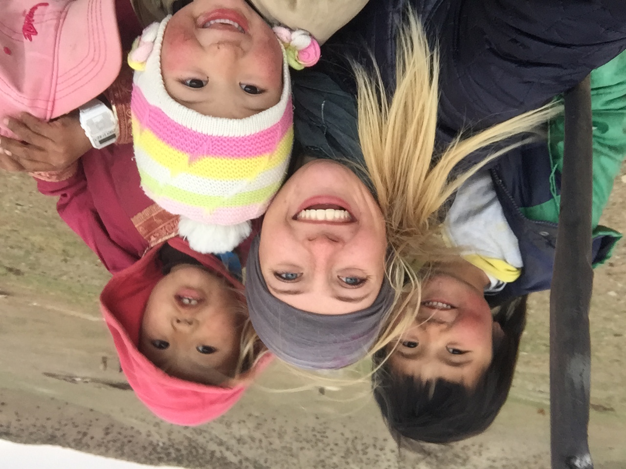 Finn und ich hatten die Nacht eine eigene gemütliche Jurte mit ihrem eigenen kleinen Ofen, doch das Feuer hält nicht komplett über Nacht. In unserem Schlafsack und einer Decke darüber, sowie dicken Kamelwollsocken blieben wir über Nacht kuschelig warm. Nur der Wind war soooooo laut und stark, dass wir froh waren, dass das Zelt so stabil gebaut ist und nicht so einfach davon fliegen kann. Als am Morgen, die Mutter klopfte, um Feuer zu machen, traute ich meinen Augen nicht!!!!! Die ganzen Berge, die gestern noch grün waren, waren jetzt weiß! Und vor unserer Hütte lag einer der großen Hunde völlig eingeschneit und bewachte unsere Jurte. Wie süß!