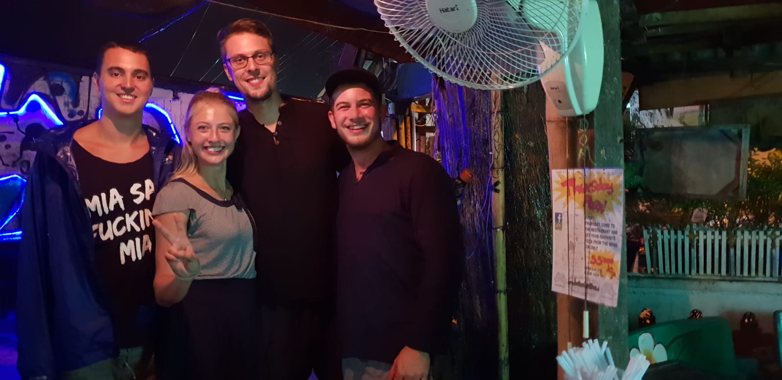 Vang Vieng eher als Party-Stadt mit Schnapsleichen bekannt - früher noch schlimmer als heute. Ganz bekannt ist das „tubing“ bei dem man in einem LKW Gummischlauch sitzt und sich auf dem Fluss treiben lässt. Am Ufer gibt es eine Bar nach der anderen, von der man ein Seil zugeworfen bekommt, herangezogen wird und Schnaps trinkt. Da es in den letzten Jahren einige Todesfälle gab wurden mehrer Bars abgerissen und nun gibt es das nur noch in abgeschwächter Form. Finn und ich entschieden uns dagegen, da der Wasserstand im Fluss schon ziemlich hoch war und die Strömung nicht ungefährlich ist. Wir blieben lieber in dem sehr geselligen Hostel und spielten die ein oder andere Partie Pool mit unseren bayerischen Freunden Ben und Alex.