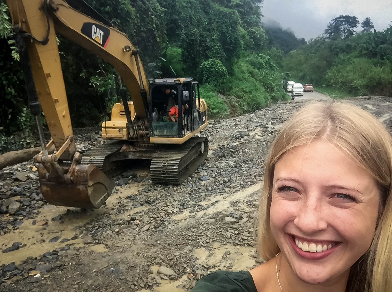 Auf der Karte wirkt es wie ein Katzensprung von Luang Prabang nach Vang Vieng, doch in Realität fährt man fünf Stunden durch die Berge mit einem Mini Van und zum Teil sind die Straßen nicht ganz ungefährlich. Aufgrund der Wassermassen sackt die Straße ab und zu am Berg etwas ab oder riesige Steinbrocken fallen nach unten oder die ganze Straße ist weggespült. Manche Absätze waren so hoch, dass wir aussteigen mussten damit der Van nicht zu schwer ist. An einem Abschnitt der Stecken lief das Wasser auf der „Straße“ und Bagger halfen den Autos durch zu kommen obwohl sie eher dazu da waren ein Flussbett auszubaggern. Das war auf jeden Fall eine abenteuerreiche Strecke.